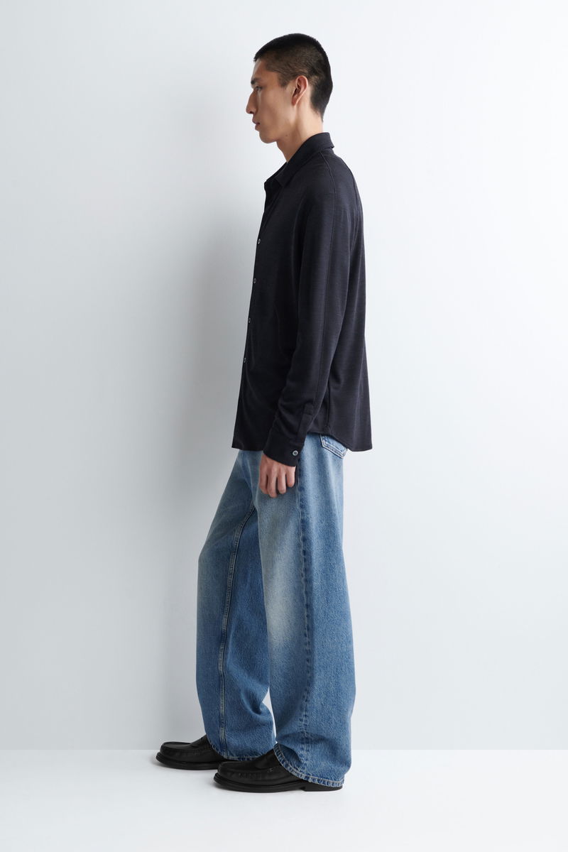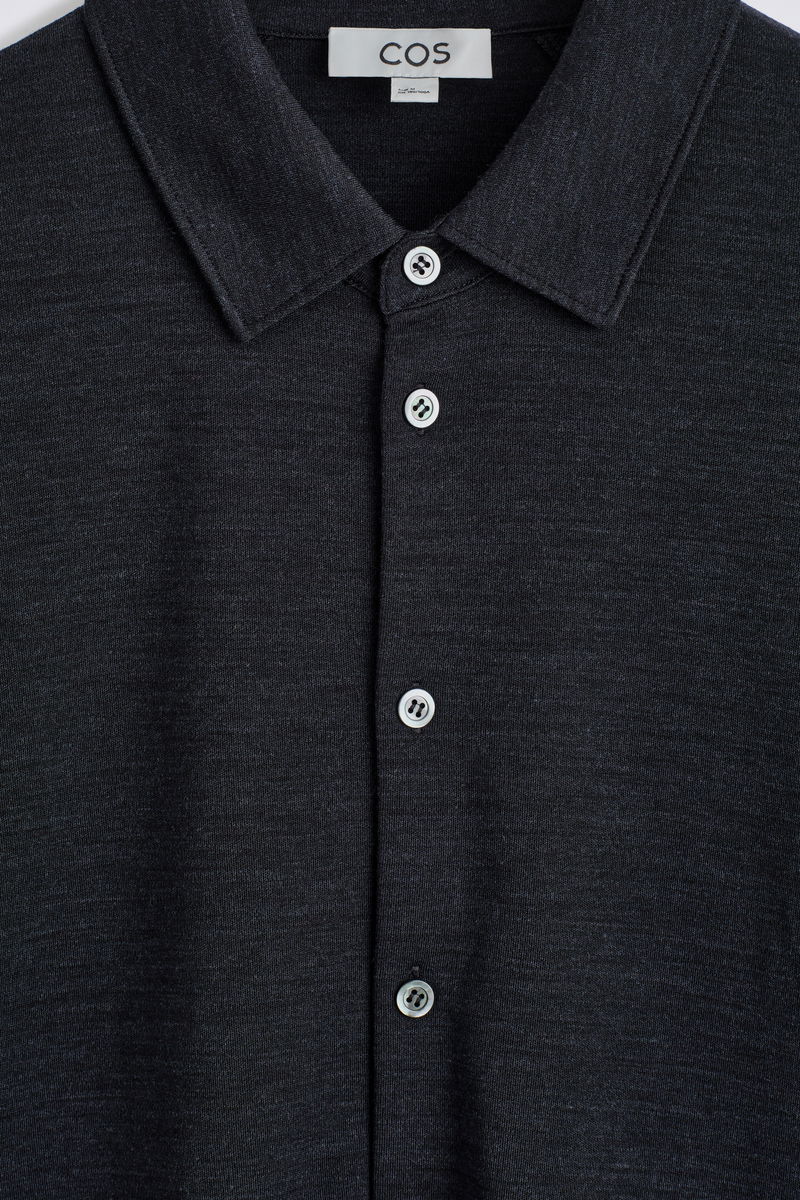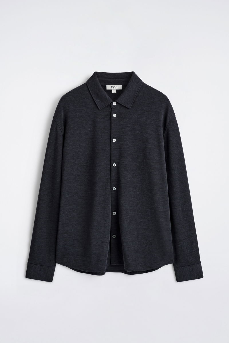 Exceptional quality and considered design details lead the COS menswear collection. Cut in a relaxed shape, this modern shirt is crafted from a fine wool blend and offered in an enduring navy tone that lends itself to versatile styling.