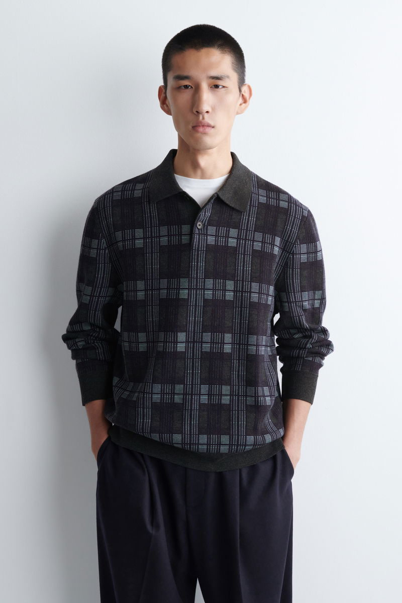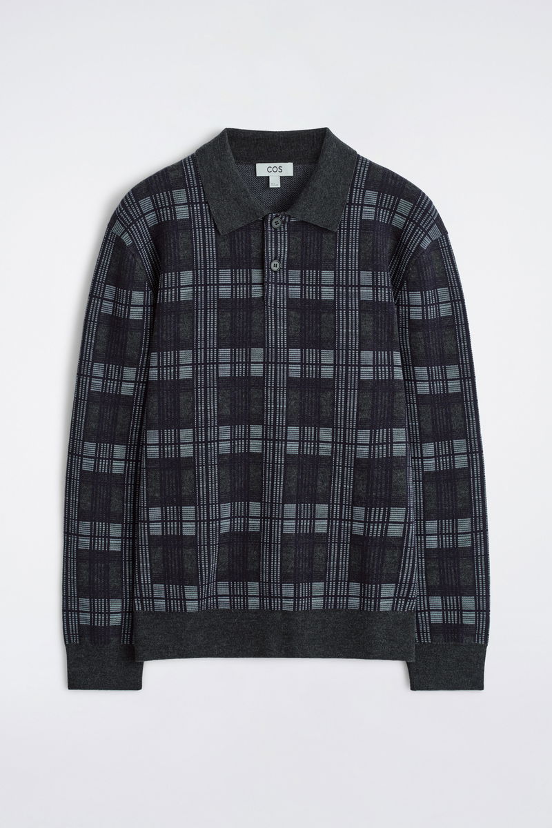 This season, the menswear team rework contemporary styles through an archival lens. This modern polo shirt is knitted from soft wool and cotton with a jacquard check that borrows from heritage sportswear. It's detailed with a ribbed collar, cuffs and hem.