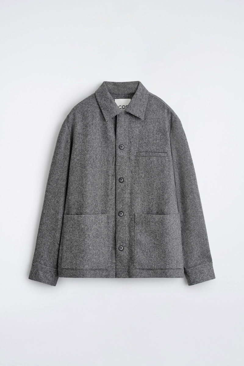 The Cos menswear collection is led by premium fabrics and classic design details. This refined overshirt is woven from tactile Italian wool-blend herringbone and features three pockets that borrow from utility. It's cut in a relaxed shape that lends itself to layering.