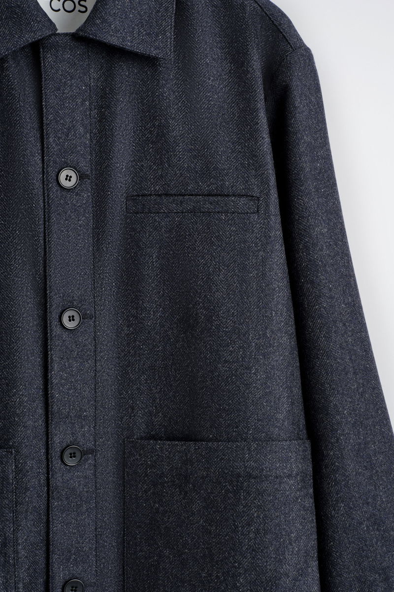 The COS menswear collection is led by premium fabrics and classic design details. This refined overshirt is woven from tactile Italian wool-blend herringbone and features three pockets that borrow from utility. It's cut in a relaxed shape that lends itself to layering.