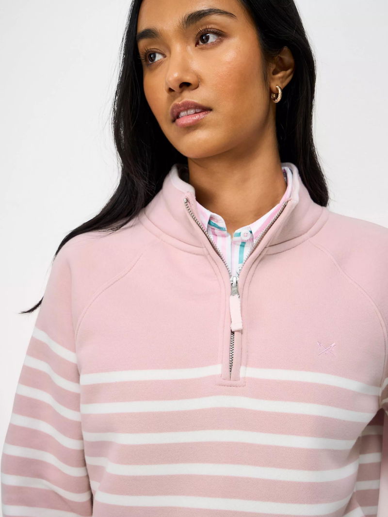 1/2 Zip Stripe Sweatshirt, Raspberry Pink