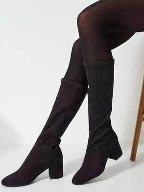 Soft suede with a zip fastening and small heel - these knee highs are just as stylish as they are comfortable. Designed to fit perfectly, they'll stay up all day long no matter what you wear them with. We love them teamed with skinny jeans and an oversized shirt.