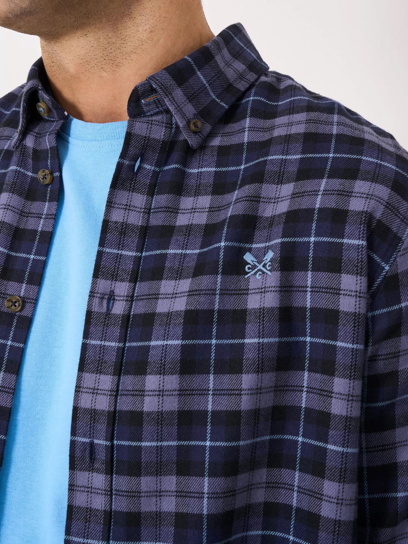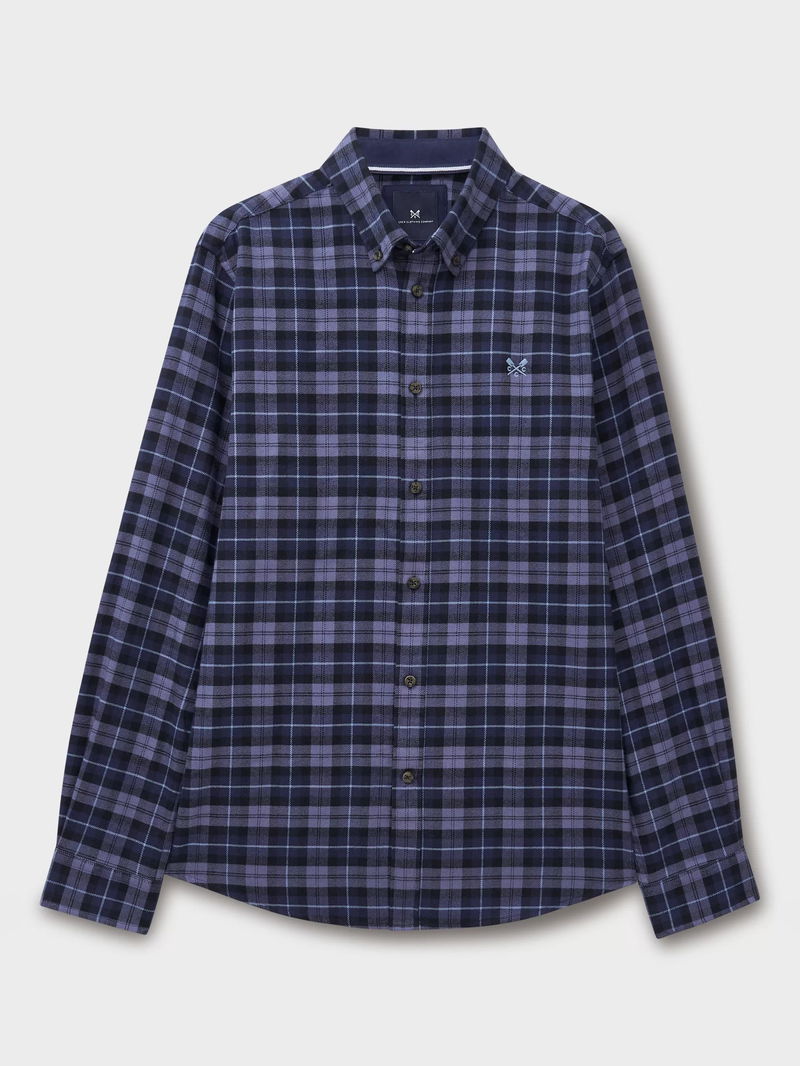 Black Watch Tartan Cotton Button Collar Shirt, Dark Blue