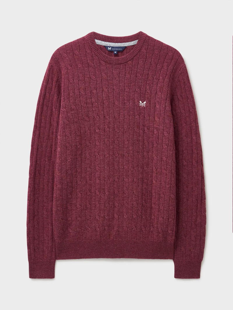 Cable Knit Wool Blend Jumper, Red Wine