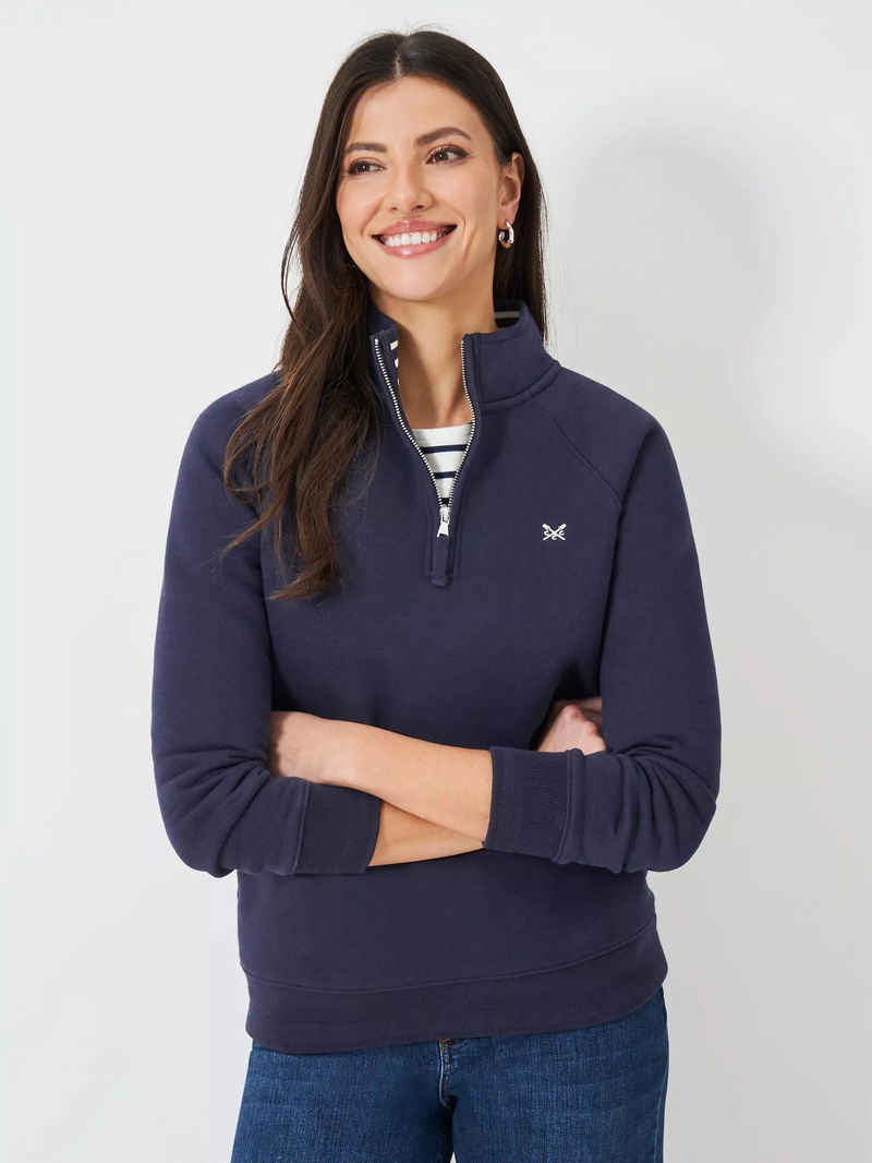 Cotton-Blend Half-Zip Sweatshirt, Dark Blue
