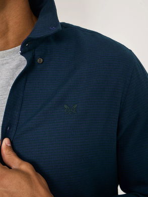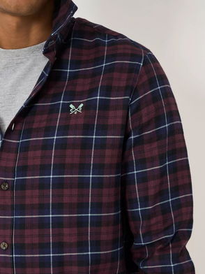 A flannel shirt in blue. A wardrobe essential to take you from autumn into winter, this shirt is made from brushed 100% cotton and finished with the iconic crossed oars embroidered on the chest. Chambray touches around the inner collar and cuffs are the perfect finishing touch. Pair with jeans and boots.