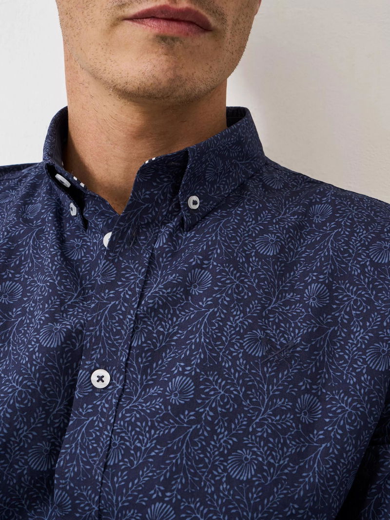 Cotton Regular Fit Floral Shirt, Navy