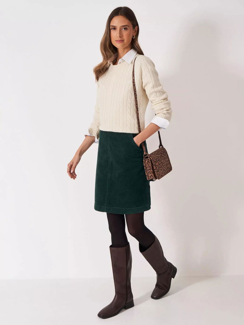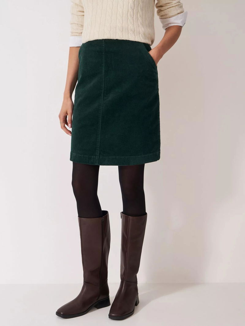 Hemmed to the perfect mini, pull on this skirt from Crew Clothing. In a comfortable A-line, it's crafted from a cotton blend with a high waist. Secured by a zip closure.