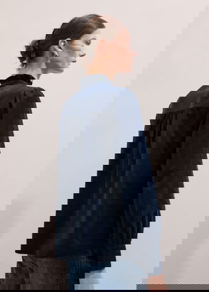 The notched v-neckline with tie-up detailing is oh-so flattering, along with the relaxed, loose drape thanks to the lightweight and breathable double-cloth fabric. Jeans will look great paired with this.