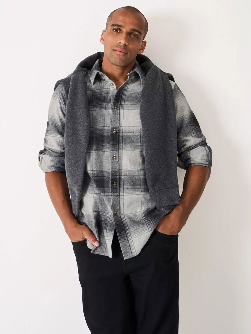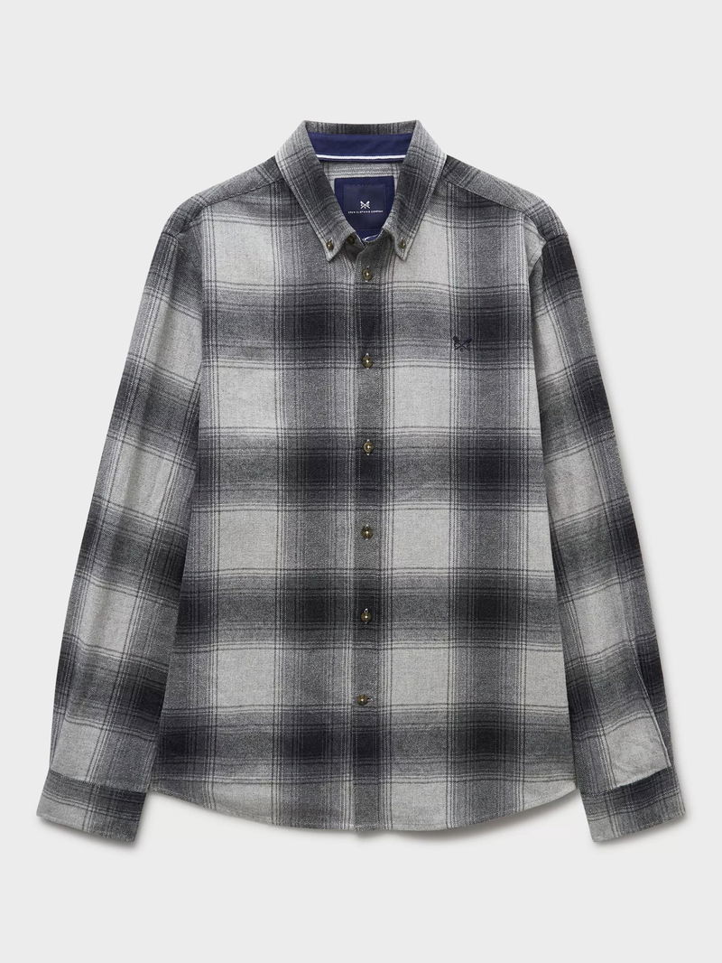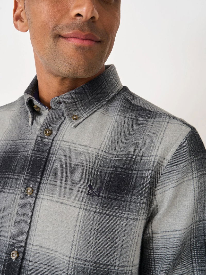 Filey Check Cotton Flannel Shirt, Mid Grey