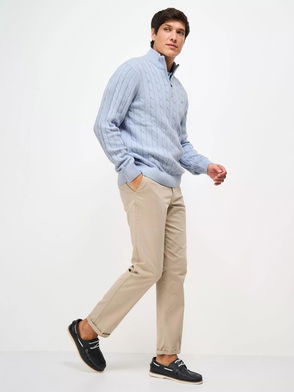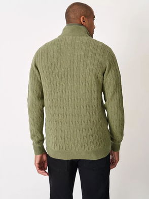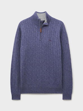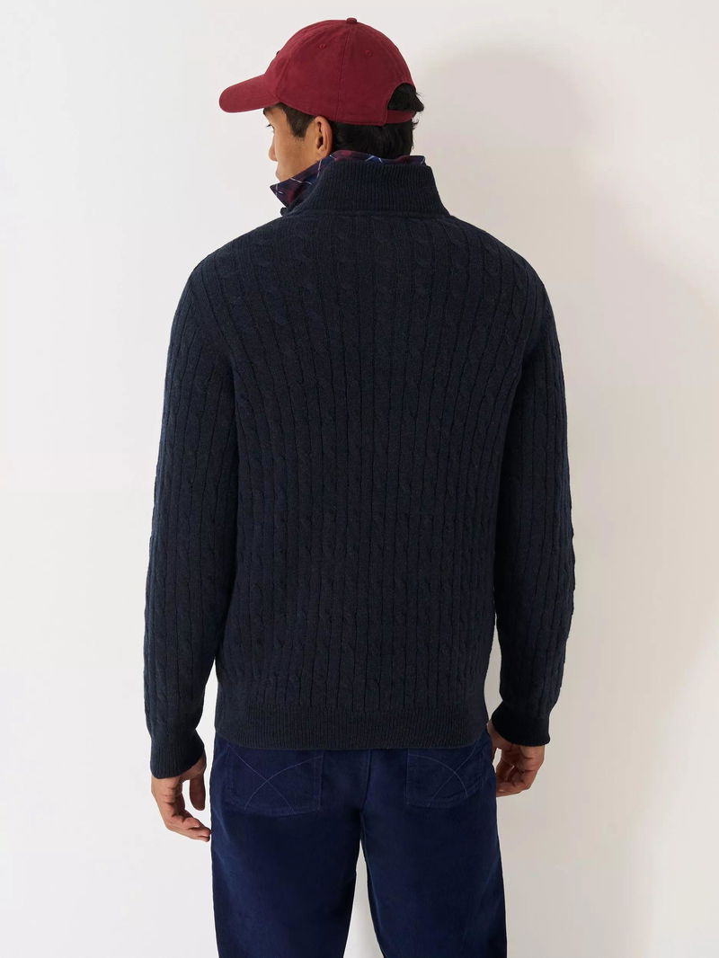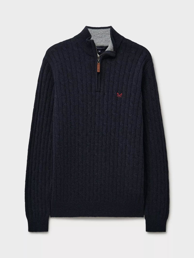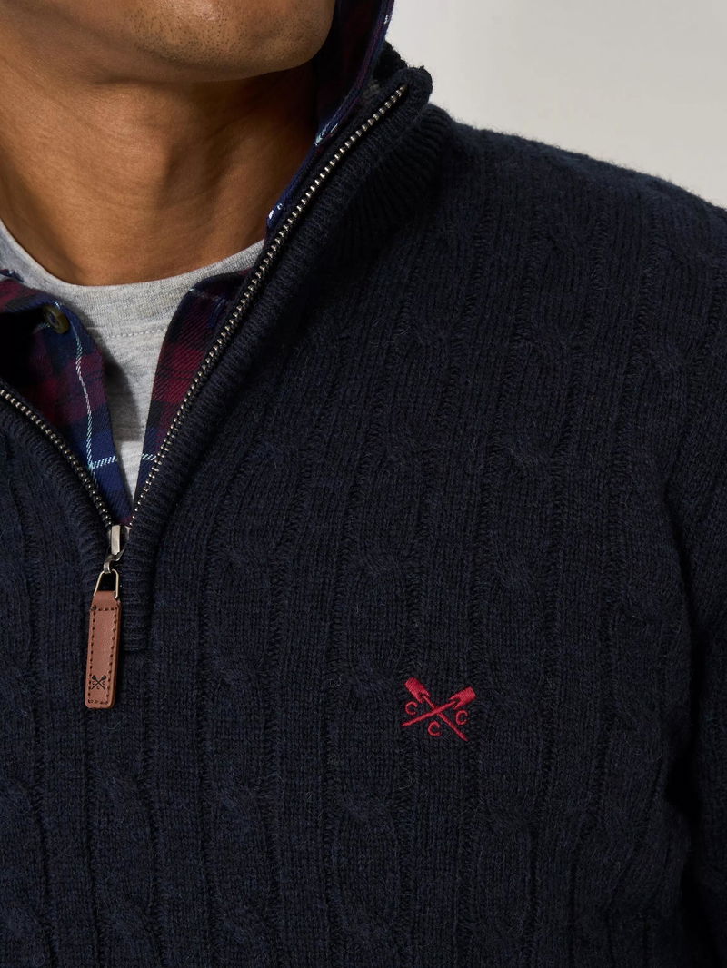 Half Zip Lambswool Blend Cable Knit Jumper, Navy