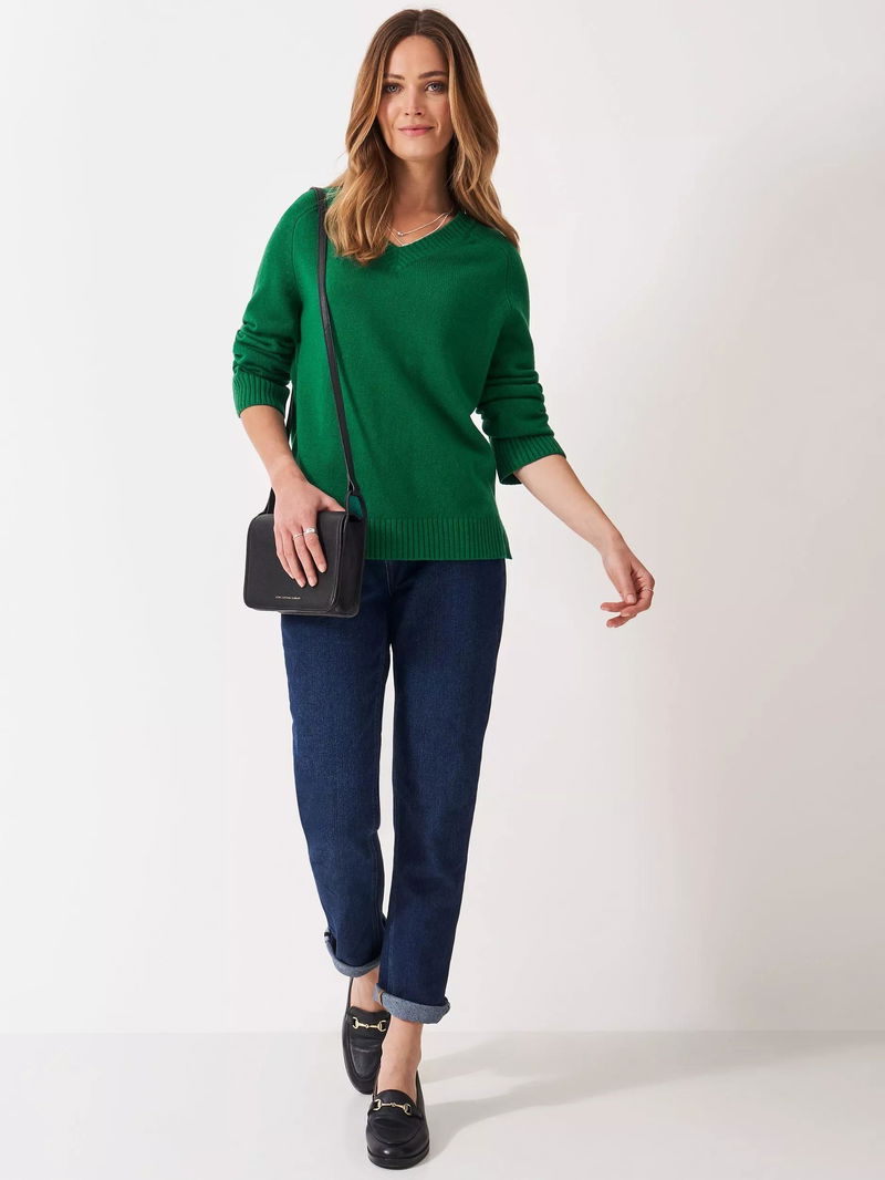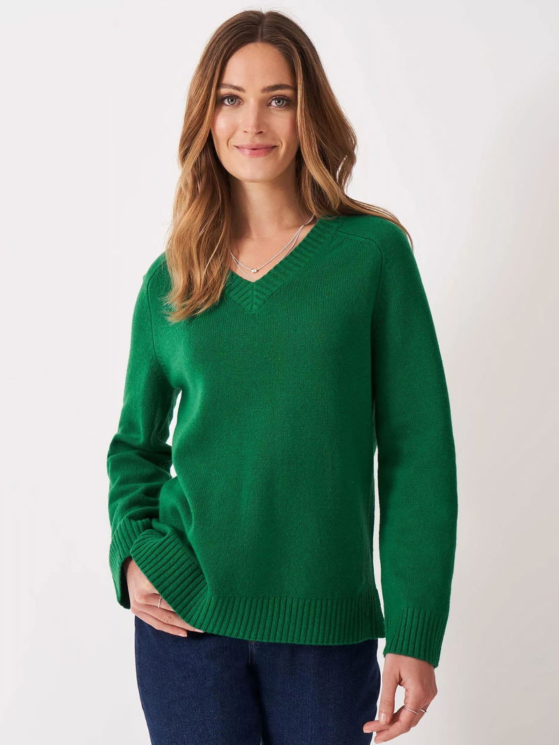 Harmony V-Neck Saddle Shoulder Jumper, Green