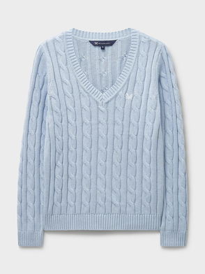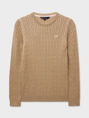 A heritage cable knit jumper. Crafted from cotton with a touch of cashmere, the twisted cable stitch is finished with ribbing on the cuffs and collar. Wear with jeans from week to weekend.