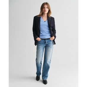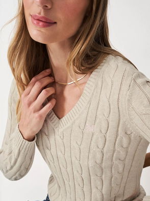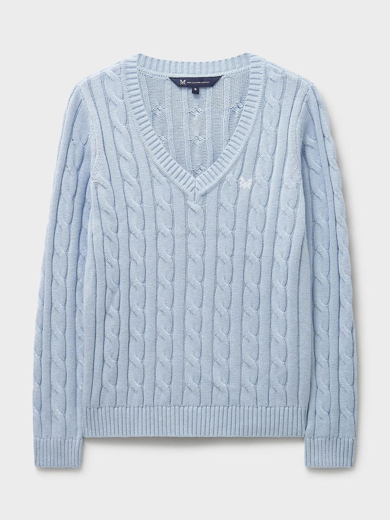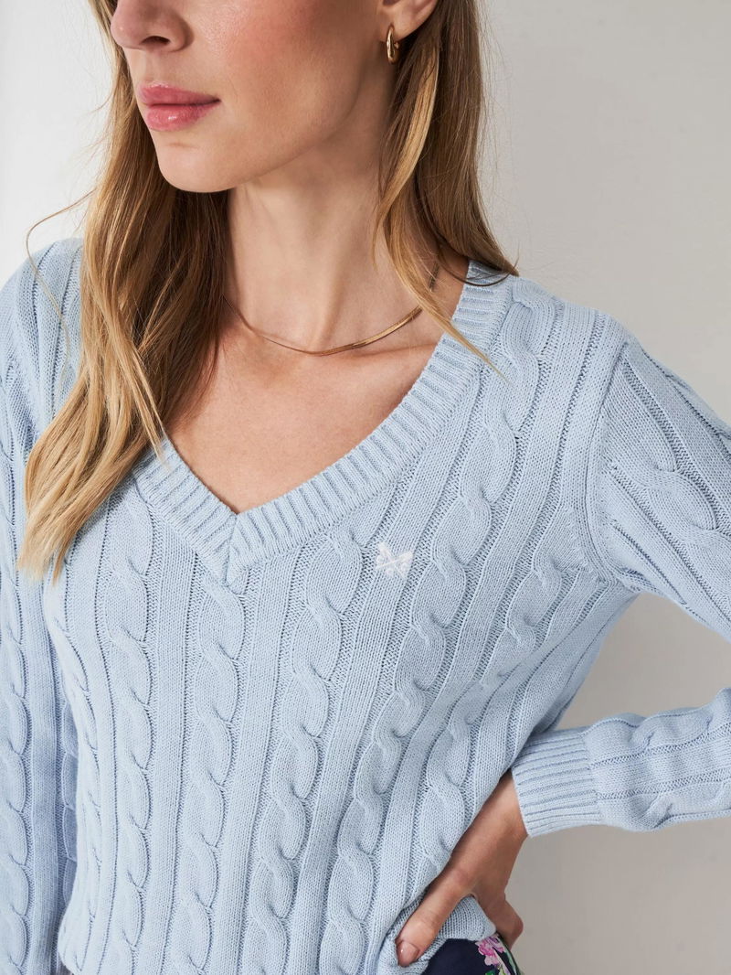 Heritage V-Neck Cable Knit Jumper, Aqua Blue