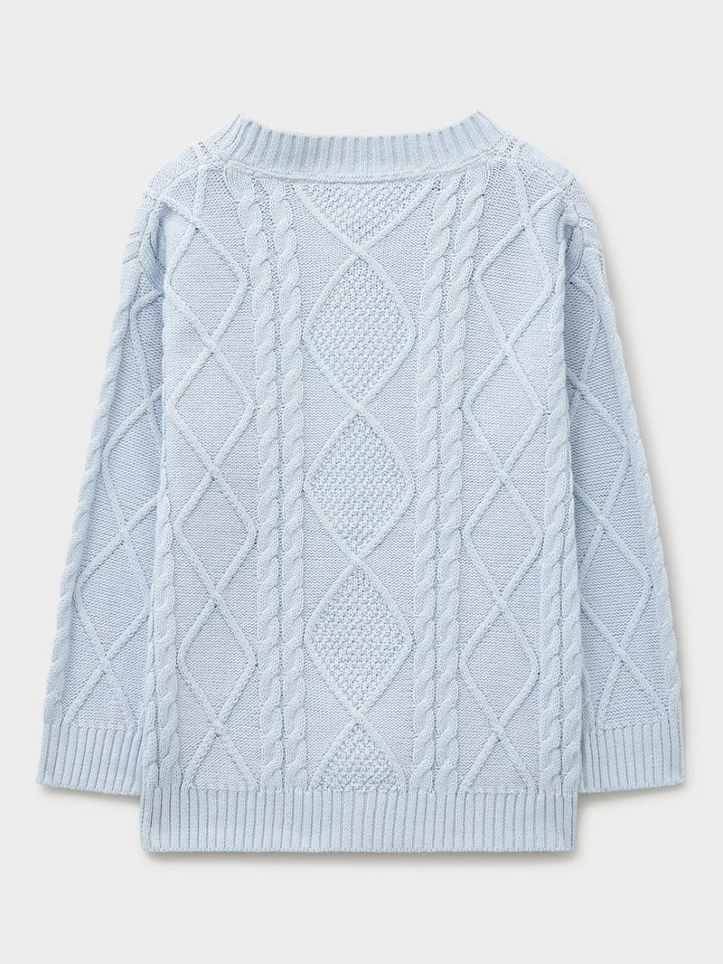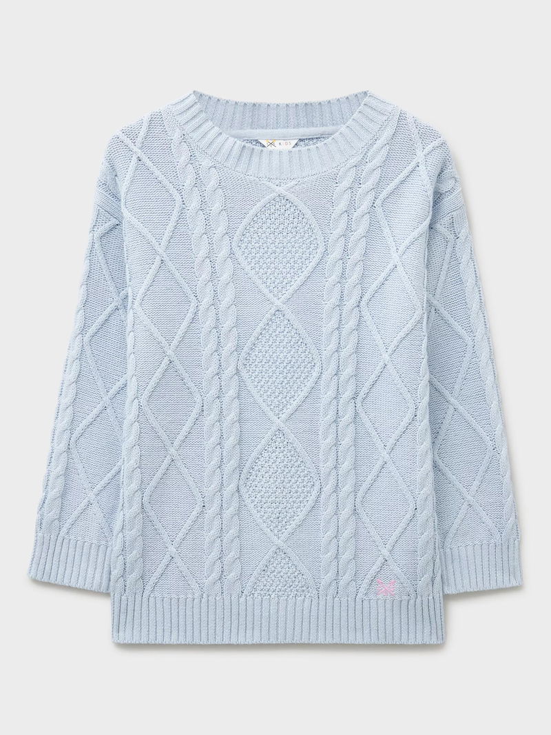 Kids' Cotton Chunky Knit Crew Neck Jumper, Light Blue