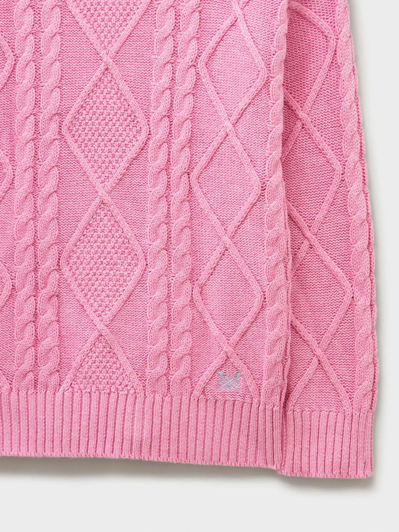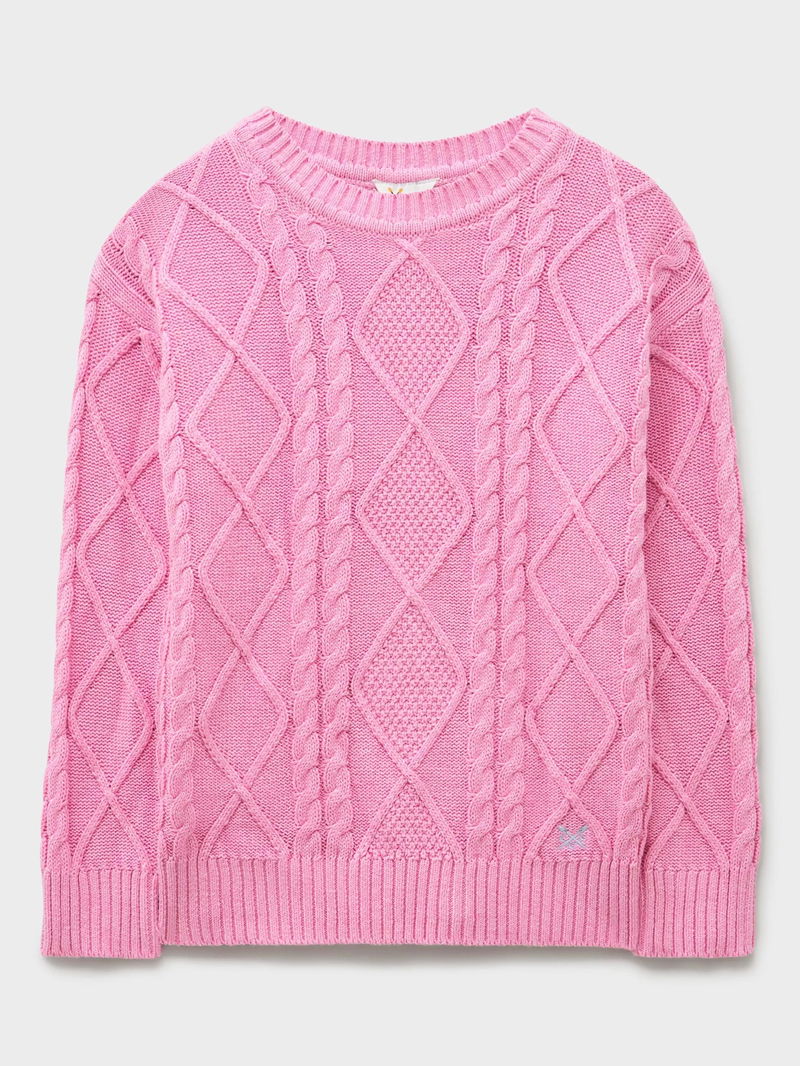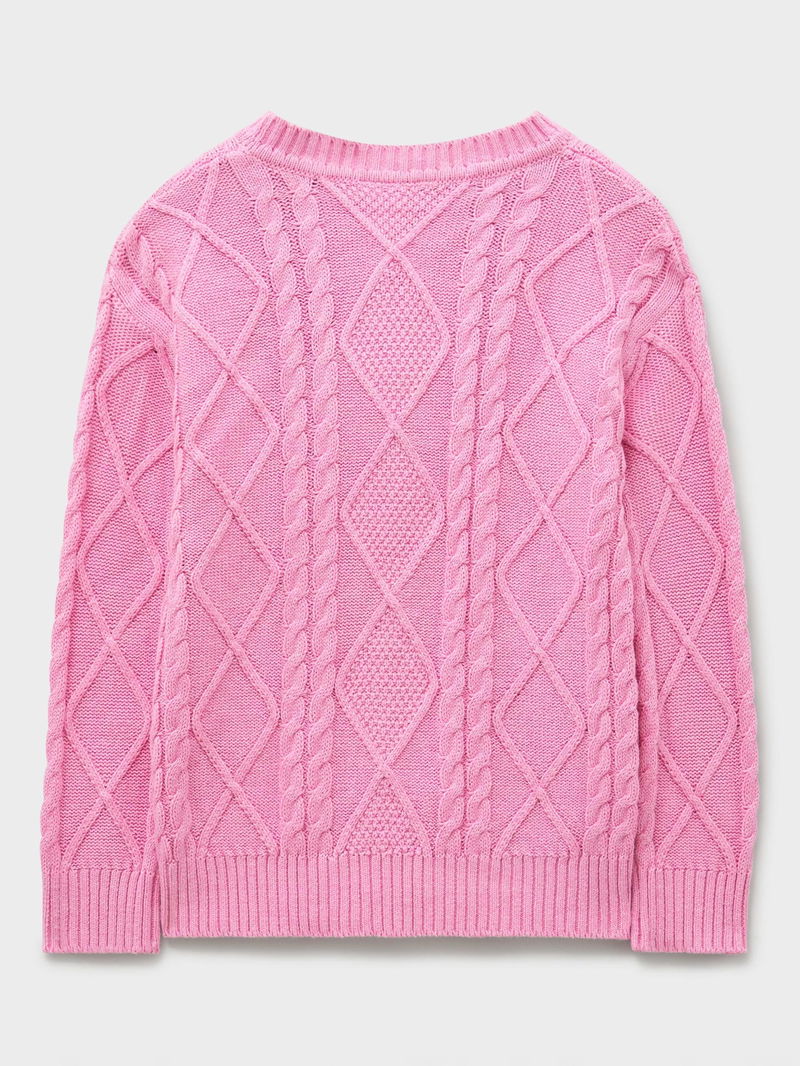 Kids' Heritage Cable Knit Crew Neck Jumper, Light Pink