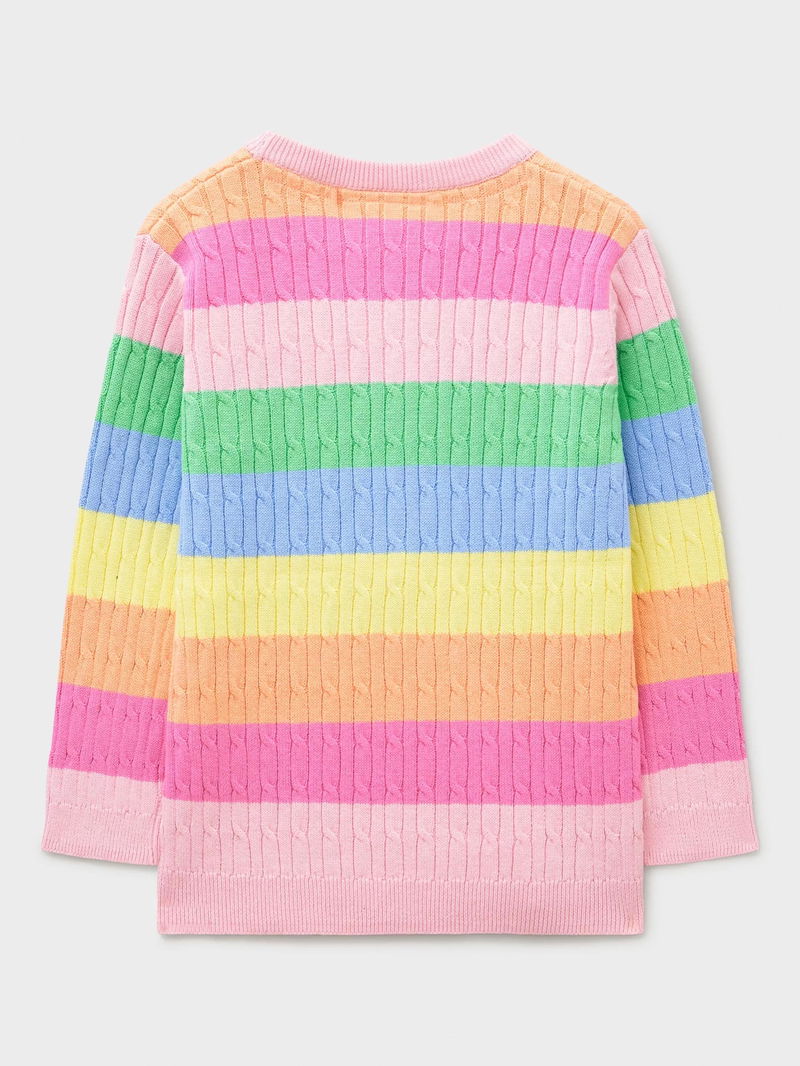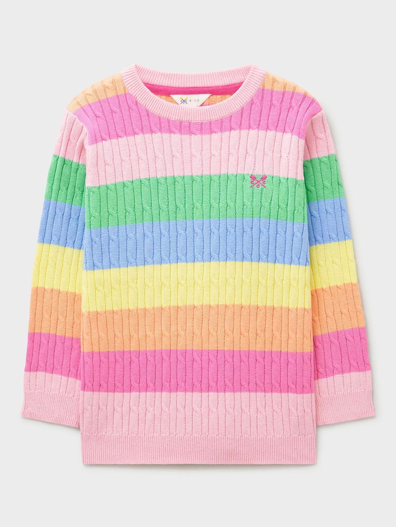 Kids' Heritage Cable Knit Crew Neck Jumper, Multi Yellow