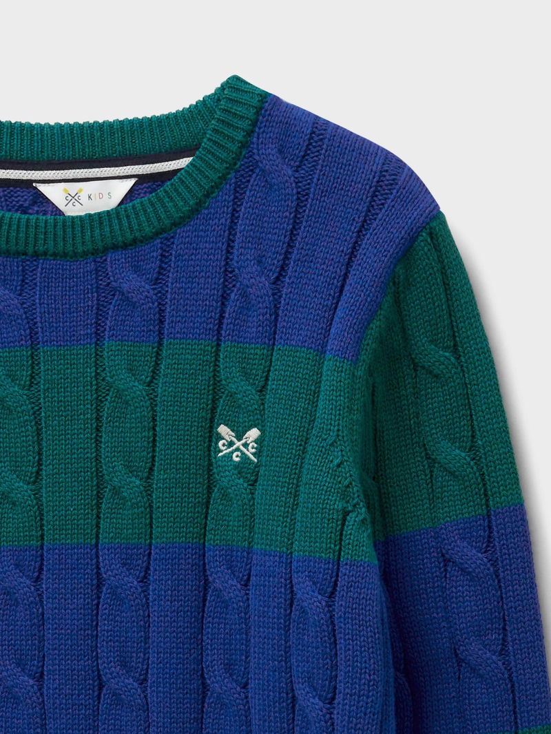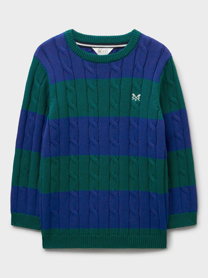 Kids' Heritage Stripe Cable Knit Jumper, Jade Green