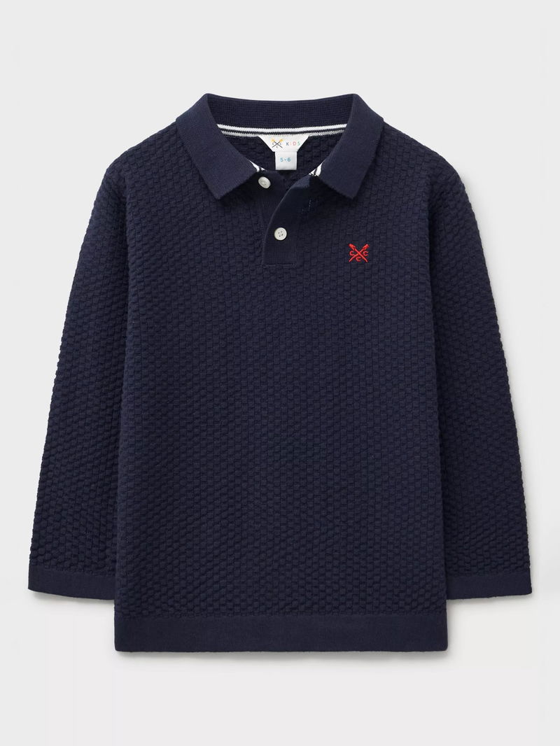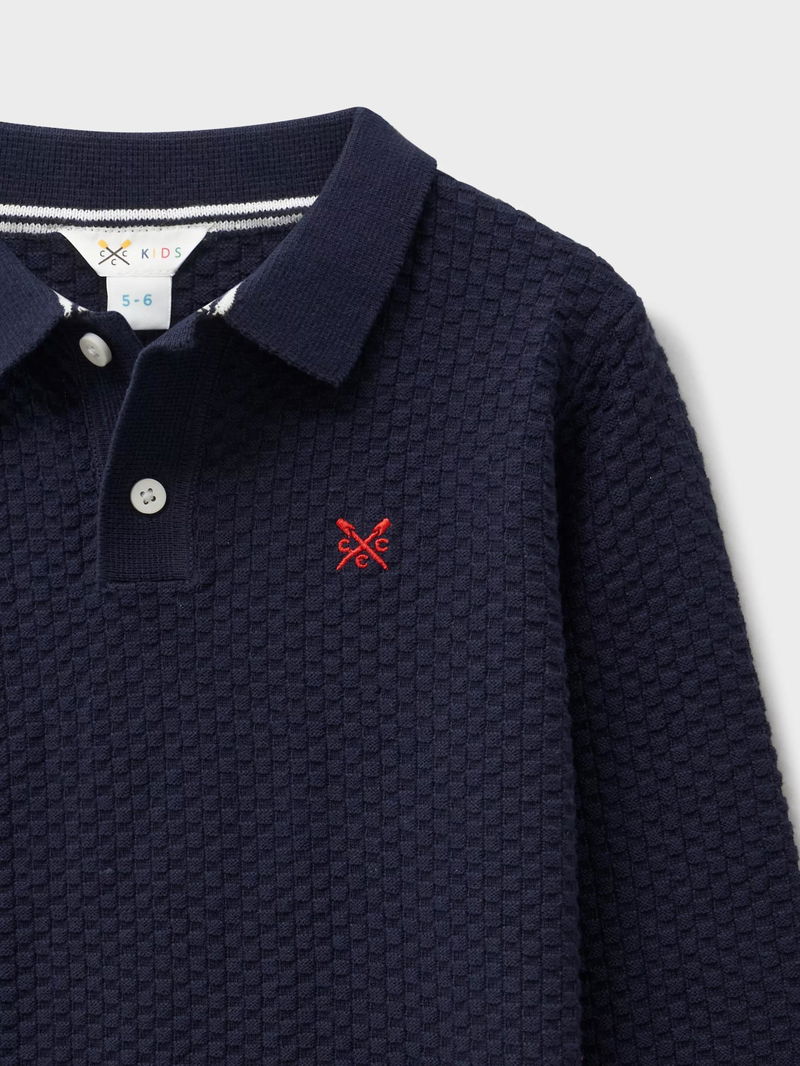 Kids' Knitted Long Sleeve Polo Shirt, Navy Blue