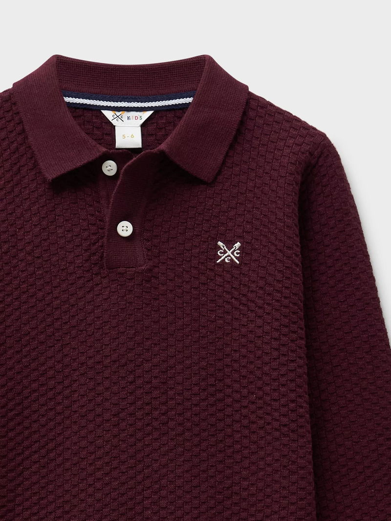 Kids' Knitted Long Sleeved Polo Shirt, Red Wine