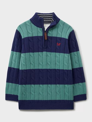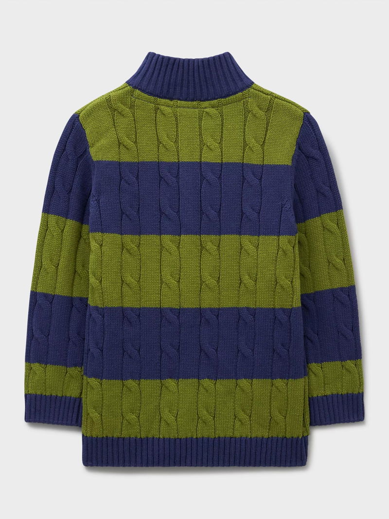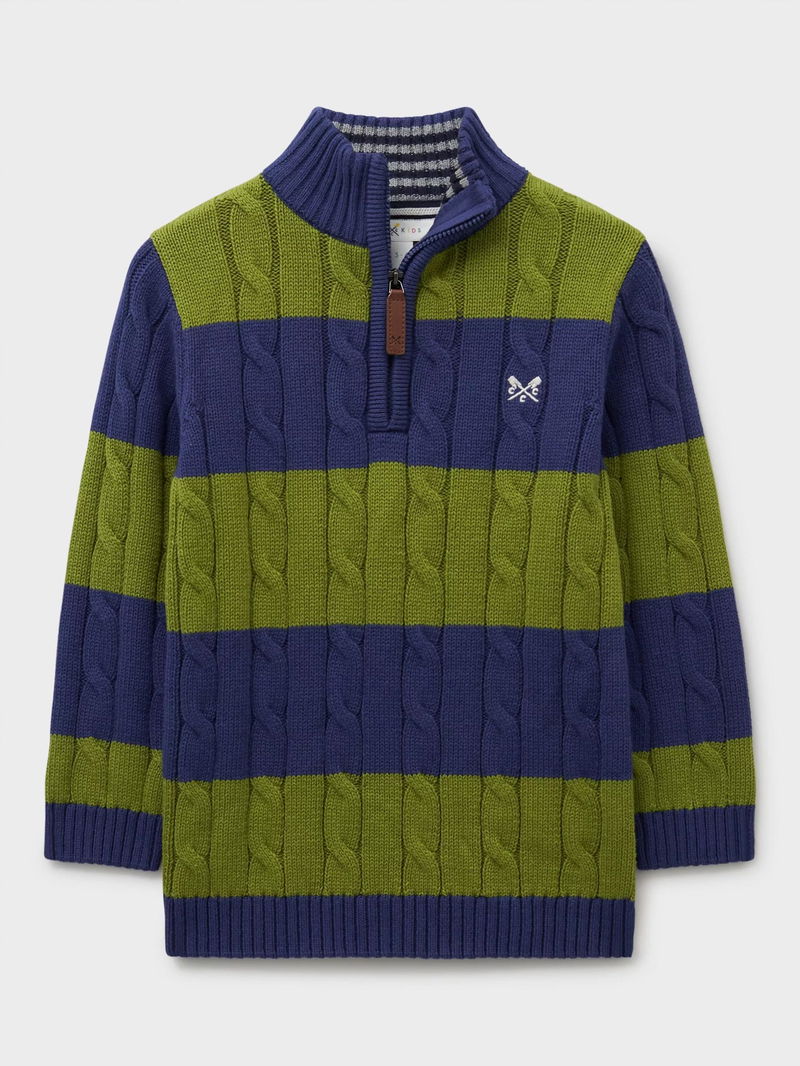 Kids' Oarsman Stripe Cable Knit Half Zip Jumper, Mid Green