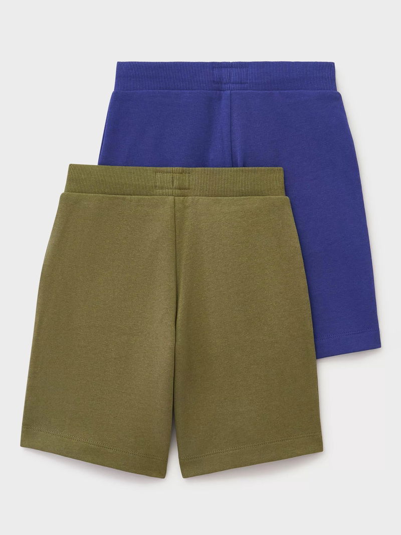 Kids' Plain Jersey Shorts, Pack Of 2, Blue/Khaki