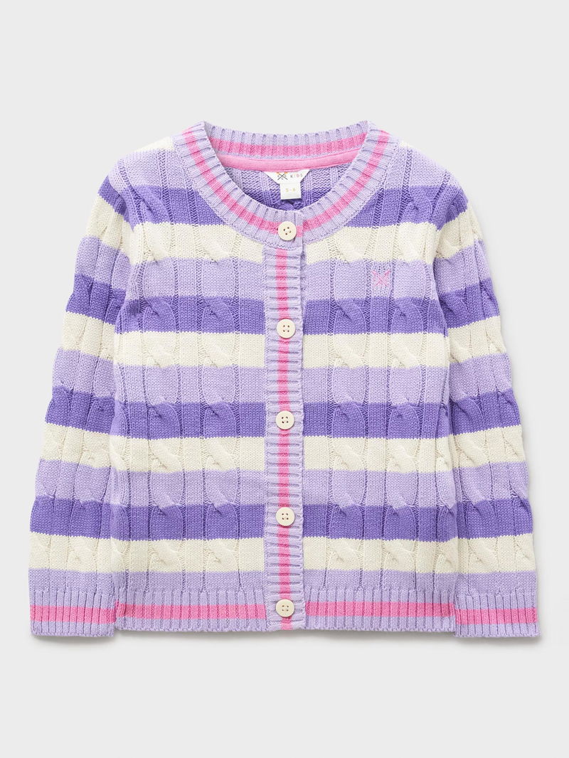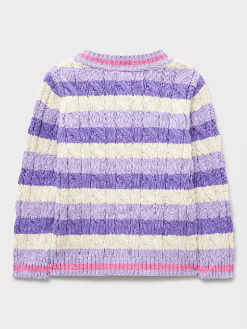 Kids' Stripe Cable Knit Cardigan, Light Purple