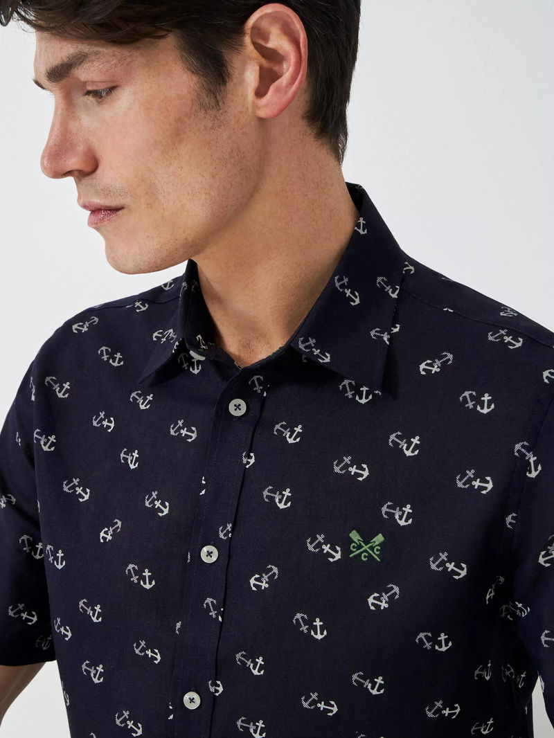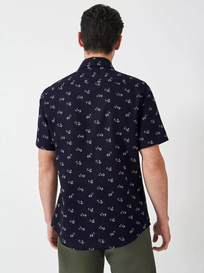 Linen Blend Regular Fit Anchor Graphic Shirt, Navy Blue