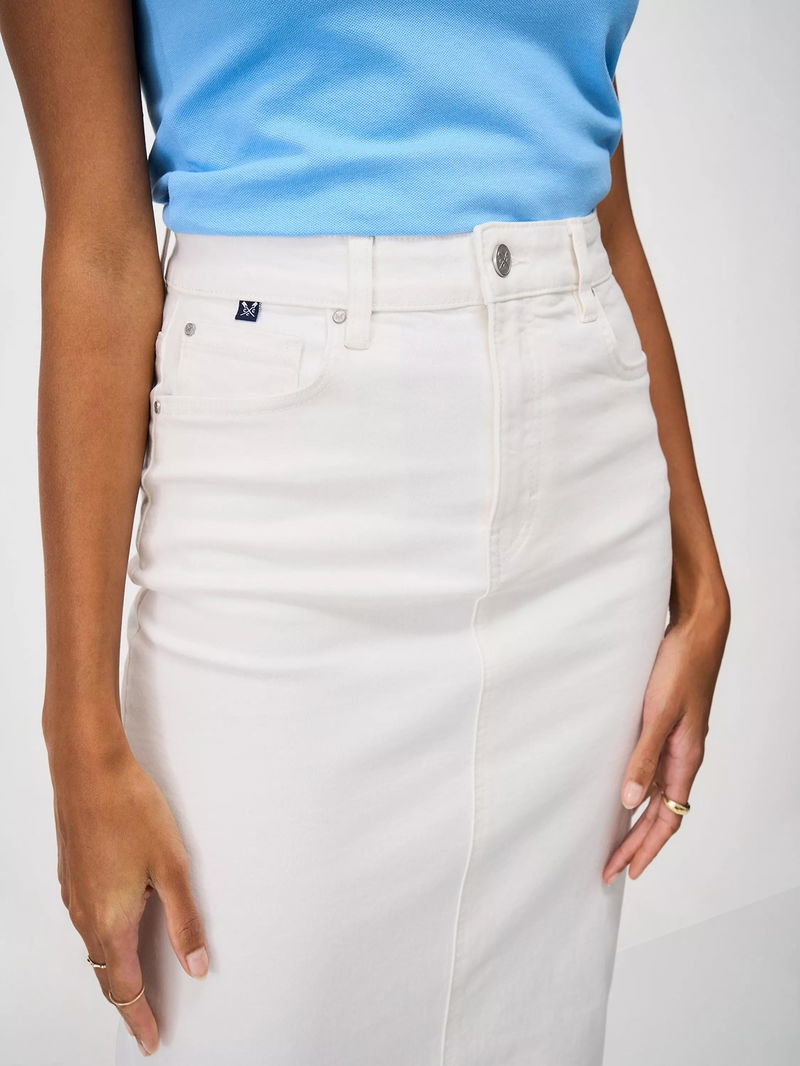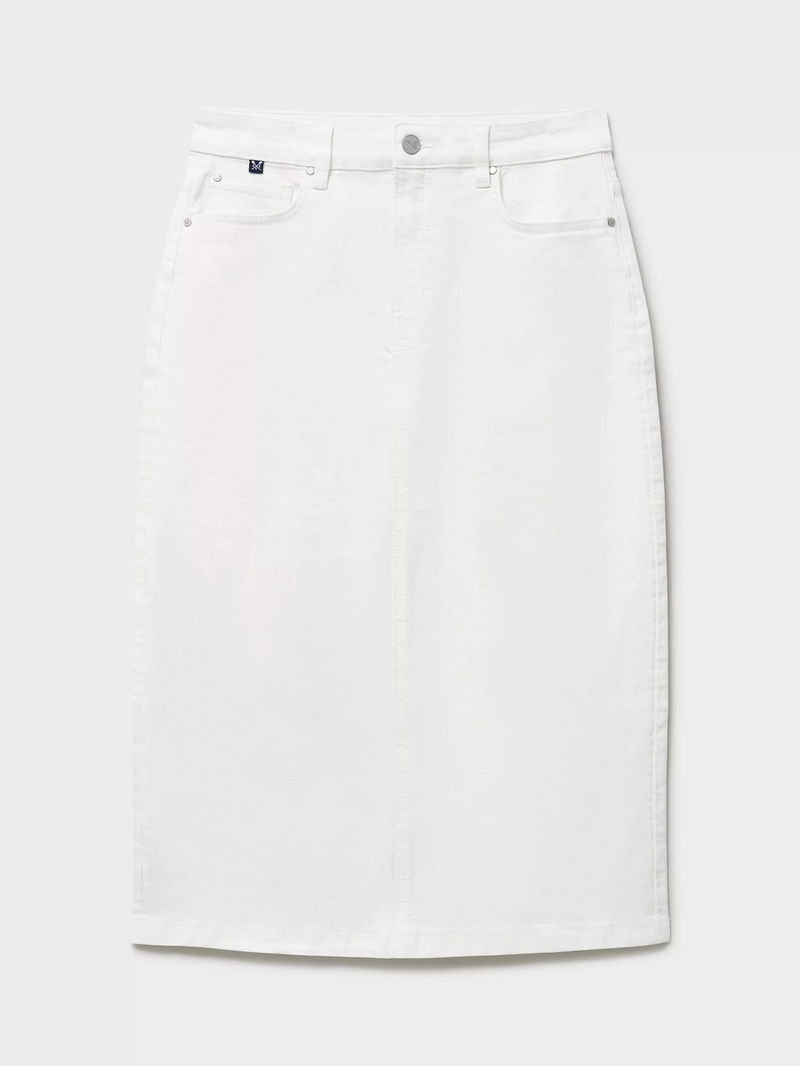 Cut from soft cotton with slight stretch for comfort, this flattering skirt features a split on the back and classic five-pocket detailing. Iconic crossed oars tab can be found on the front for a subtle extra touch. We love wearing ours with suede boots or trainers.