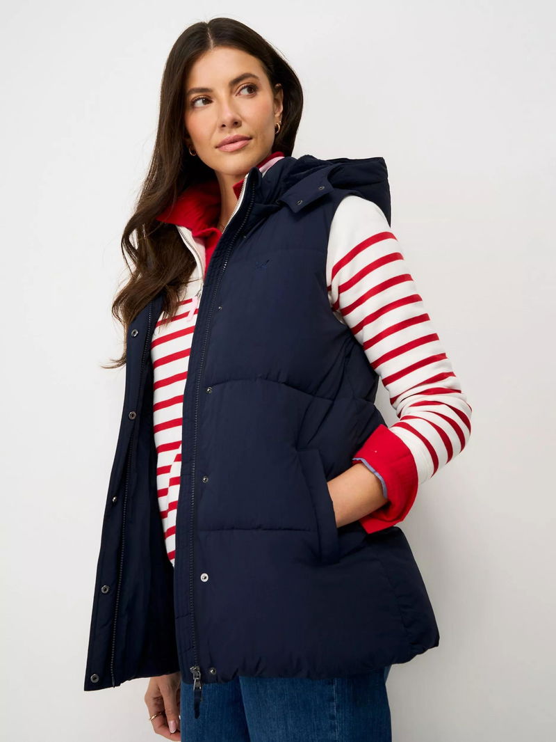 Midweight Padded Hooded Gilet, Navy Blue