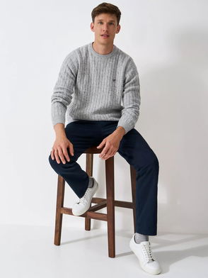 Refreshingly simple with its crew shaped neckline, this jumper from Crew Clothing lends itself to layering thanks to its light cotton blend. Constructed in a charming cable knit and stamped with the brand's iconic logo at the chest - pair over shirts for a refined approach to smart-casual layering.
