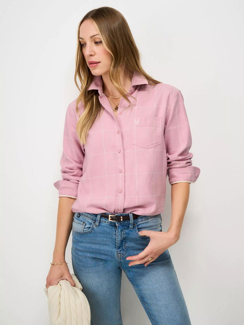 Relaxed Fit Flannel Check Shirt, Pastel Pink