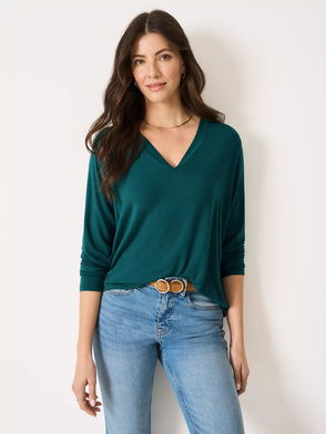 A modal jersey high neck top. Sleek and elegant, this top features the crossed oars embroidered on the hem and is washed for softness with a touch of stretch. The perfect winter layer, team with jeans, dresses and knitwear.