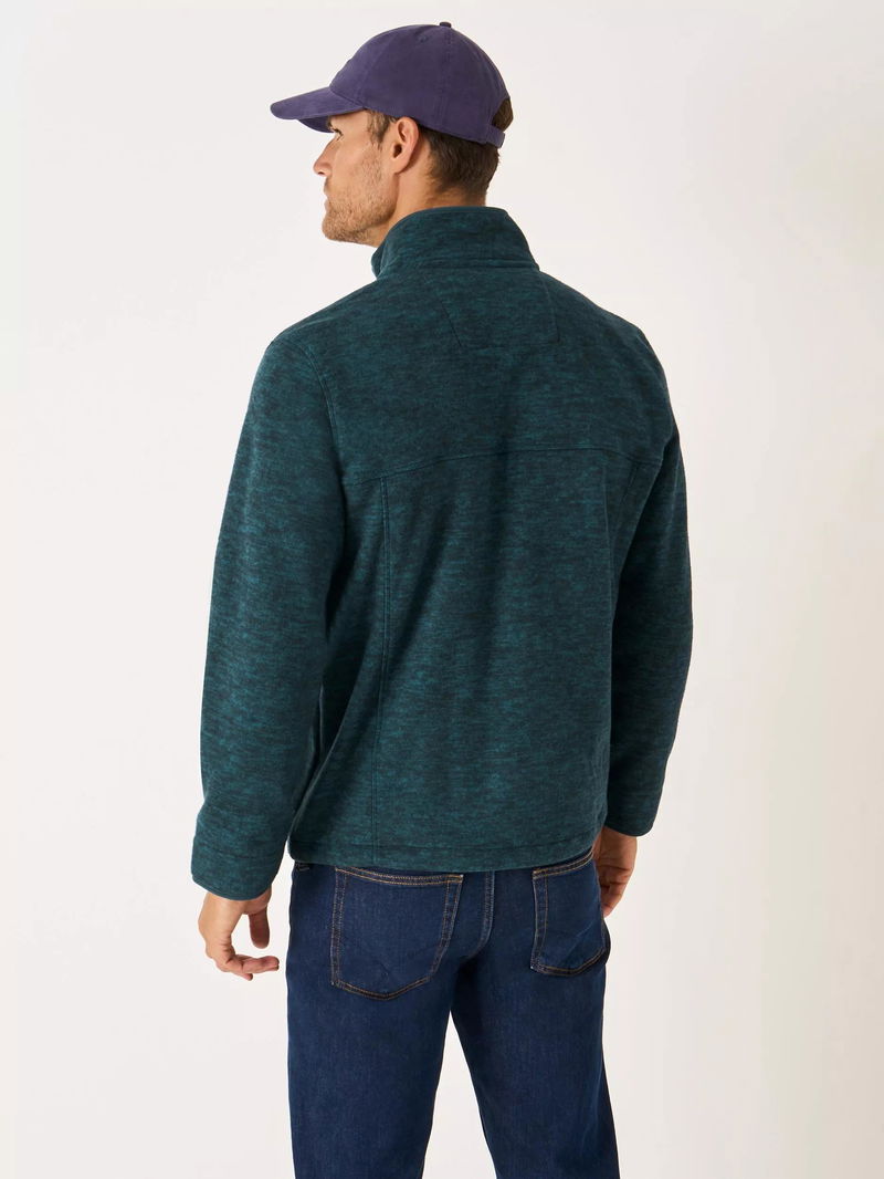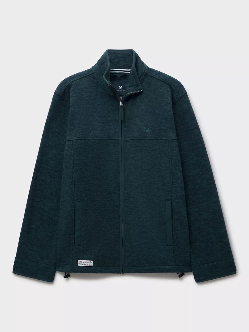 A space dyed zip through jacket in bottle green. Soft and cosy, this essential autumn layer has a funnel neck, two side pockets and binding detail around the collar, cuffs and hem. You'll find a branded zip pull and crossed oars embroidered on the chest, too. Wear over t-shirts and polos as the chill sets in.