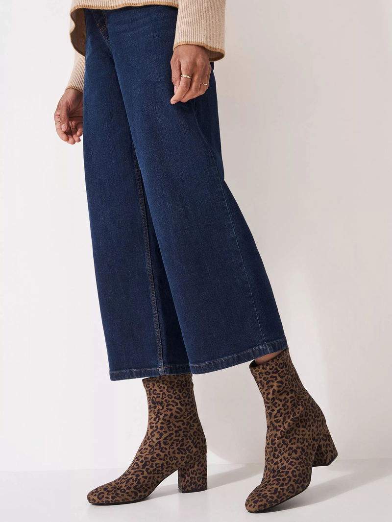 Suede Leopard Ankle Boots, Camel Brown