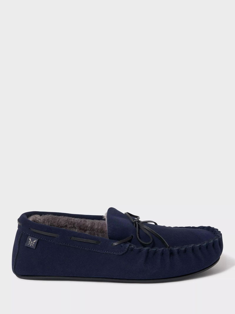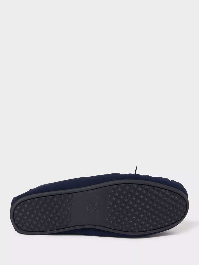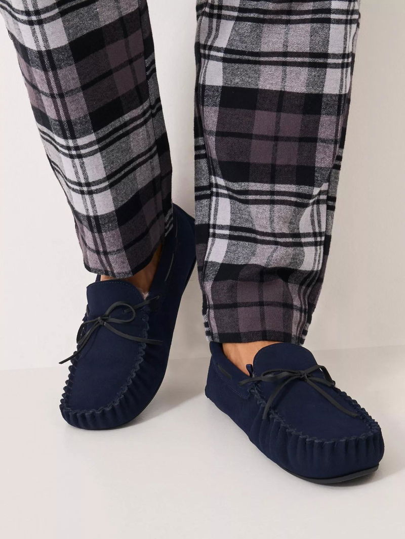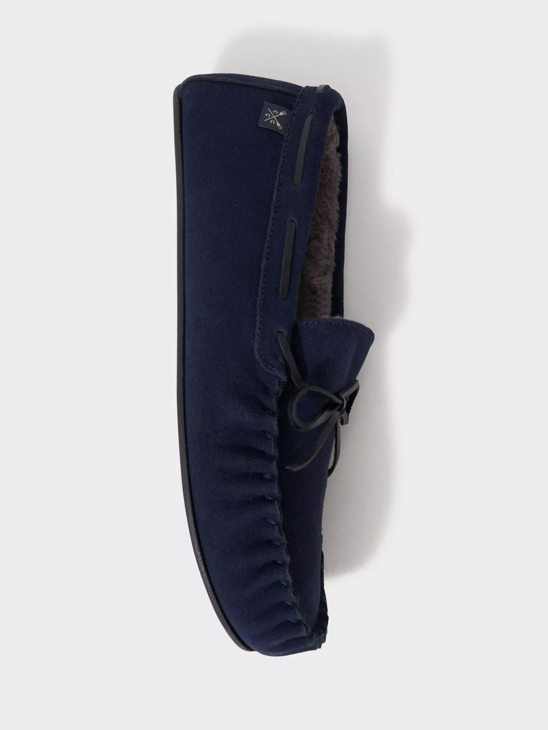 Suede Moccasin Slippers, Navy Blue