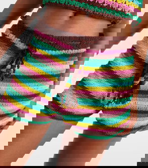 Anna Kosturova's designs are handcrafted by crochet and tie dye artisans whose families have been practicing the craft for generations. These crocheted shorts are crafted from pure cotton and feature a striped design.