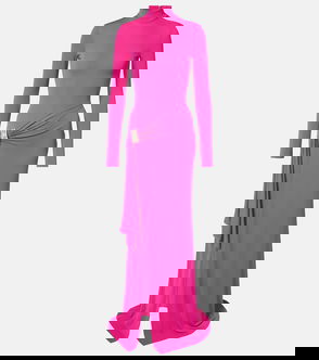 This David Koma gown is crafted from a wool blend and designed to an asymmetric silhouette with a tulle-covered side drape. The strapless, wrap-style bodice features a cutout detail and a silver-toned buckle.
