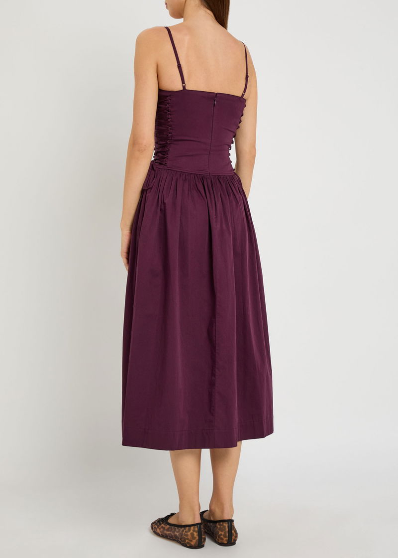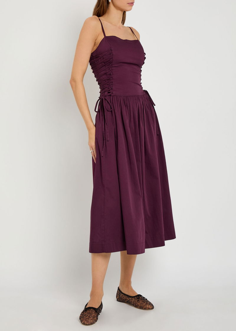 'Small and slow' London brand, Damson Madder's clothing is characterised by relaxed fits, feminine details and playful prints. Denim meets with ruffles, bows and embroidery, while cargo trousers might be rendered in an irreverent leopard print. Along with midi dresses, floral quilted jackets and oversized collar blouses, its gilets and long skirts are bestsellers.