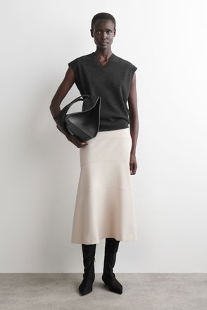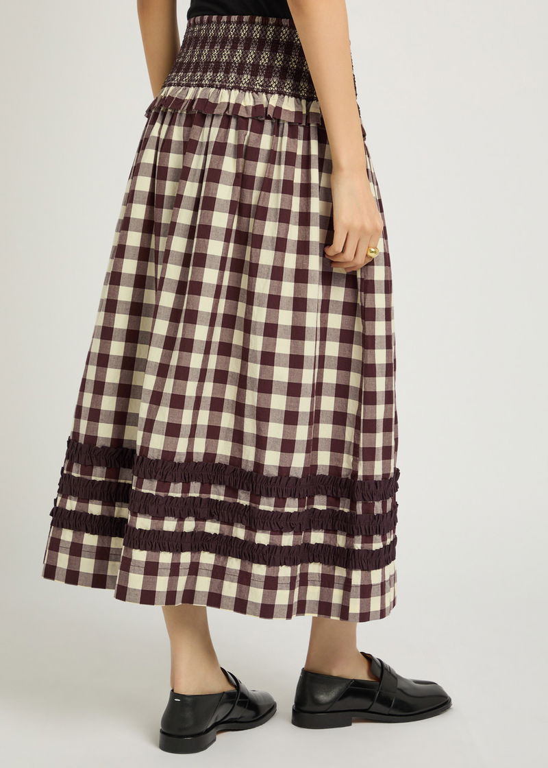 'Small and slow' London brand, Damson Madder's clothing is characterised by relaxed fits, feminine details and playful prints. Denim meets with ruffles, bows and embroidery, while cargo trousers might be rendered in an irreverent leopard print. Along with midi dresses, floral quilted jackets and oversized collar blouses, its gilets and long skirts are bestsellers.