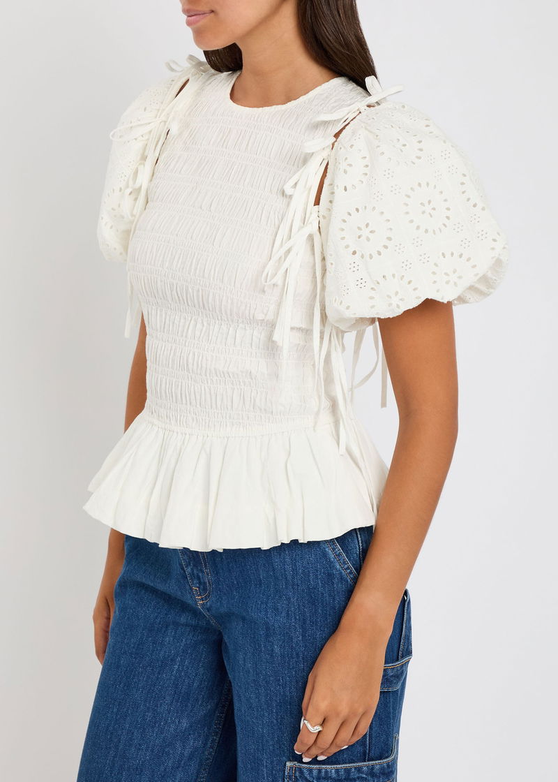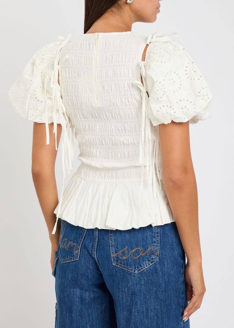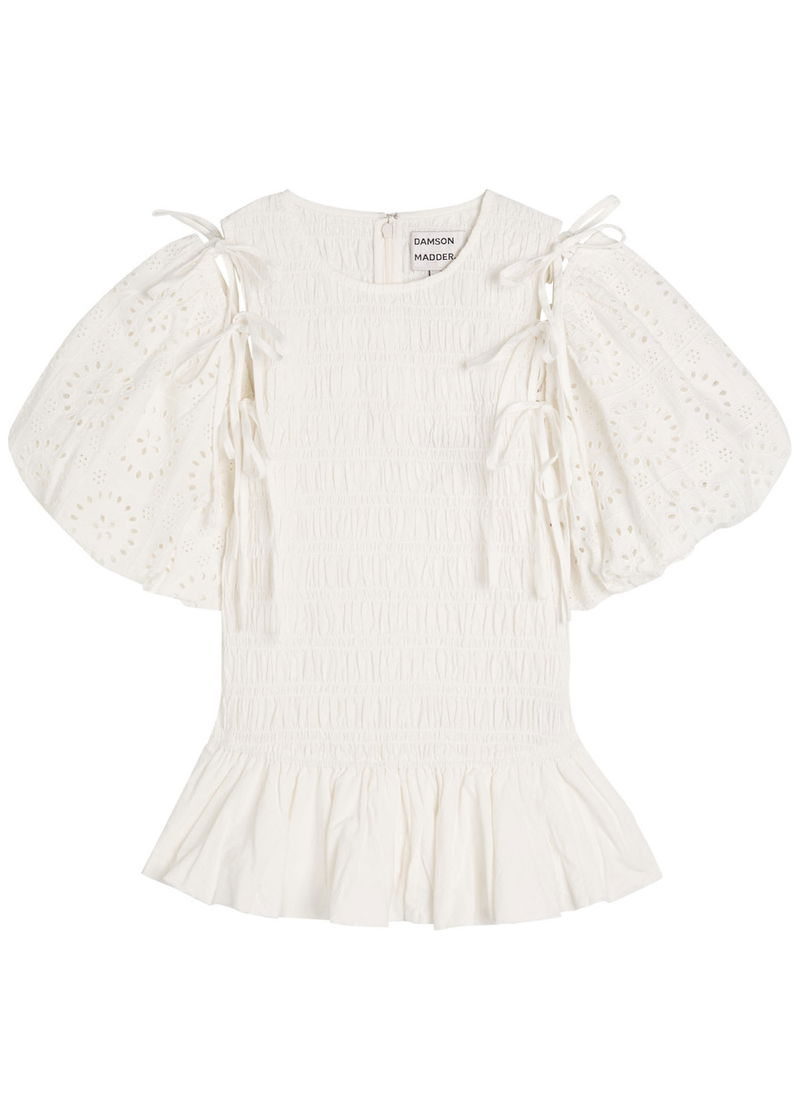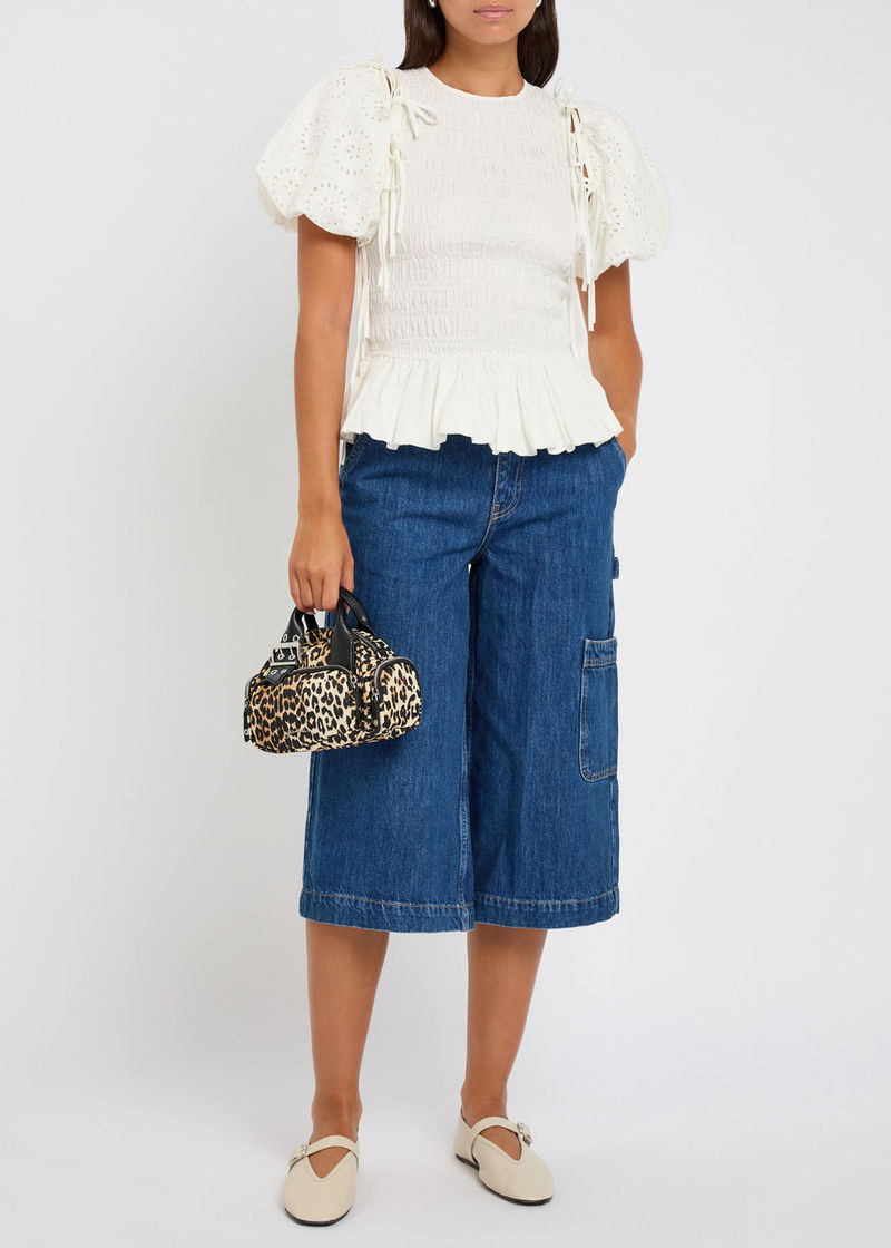 'Small and slow' London brand, Damson Madder's clothing is characterised by relaxed fits, feminine details and playful prints. Denim meets with ruffles, bows and embroidery, while cargo trousers might be rendered in an irreverent leopard print. Along with midi dresses, floral quilted jackets and oversized collar blouses, its gilets and long skirts are bestsellers.