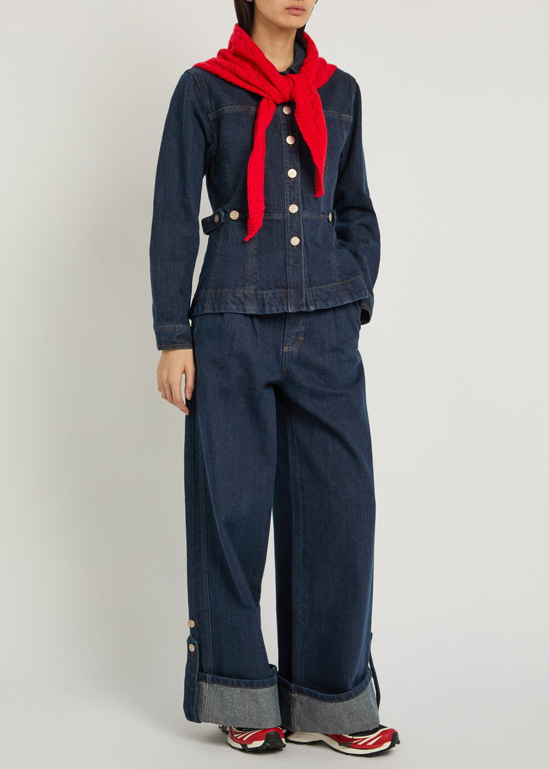 'Small and slow' London brand, Damson Madder's clothing is characterised by relaxed fits, feminine details and playful prints. Denim meets with ruffles, bows and embroidery, while cargo trousers might be rendered in an irreverent leopard print. Along with midi dresses, floral quilted jackets and oversized collar blouses, its gilets and long skirts are bestsellers.