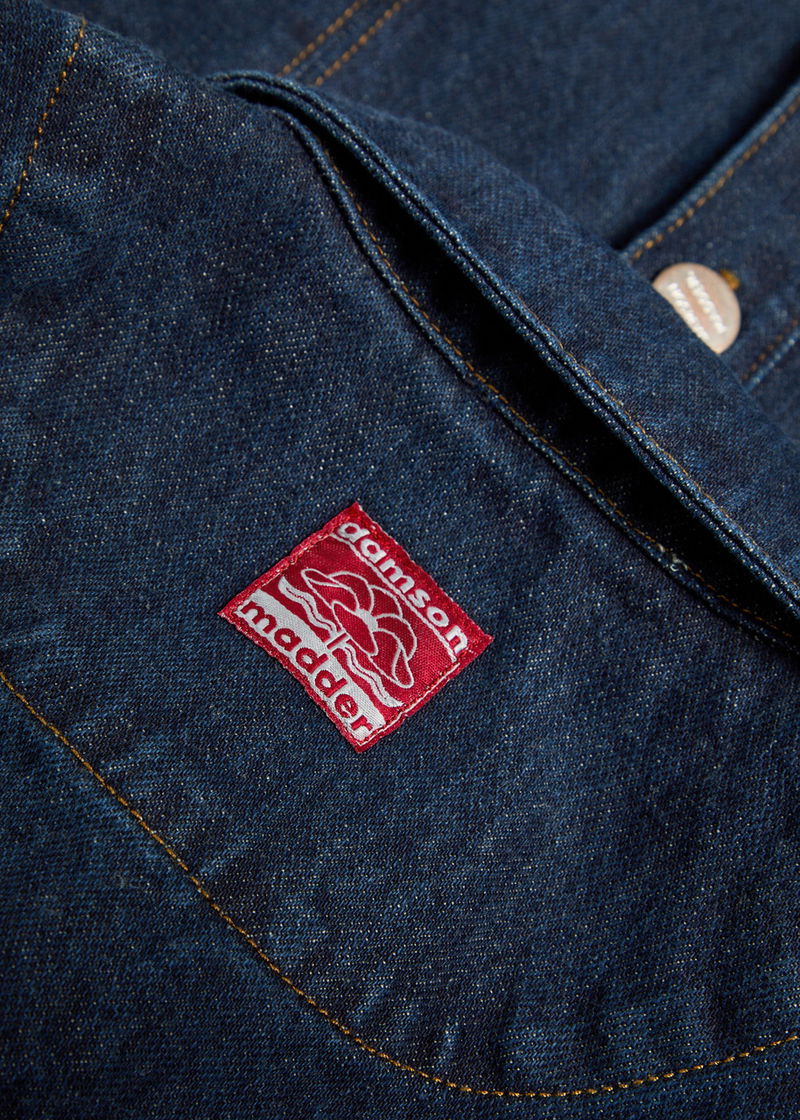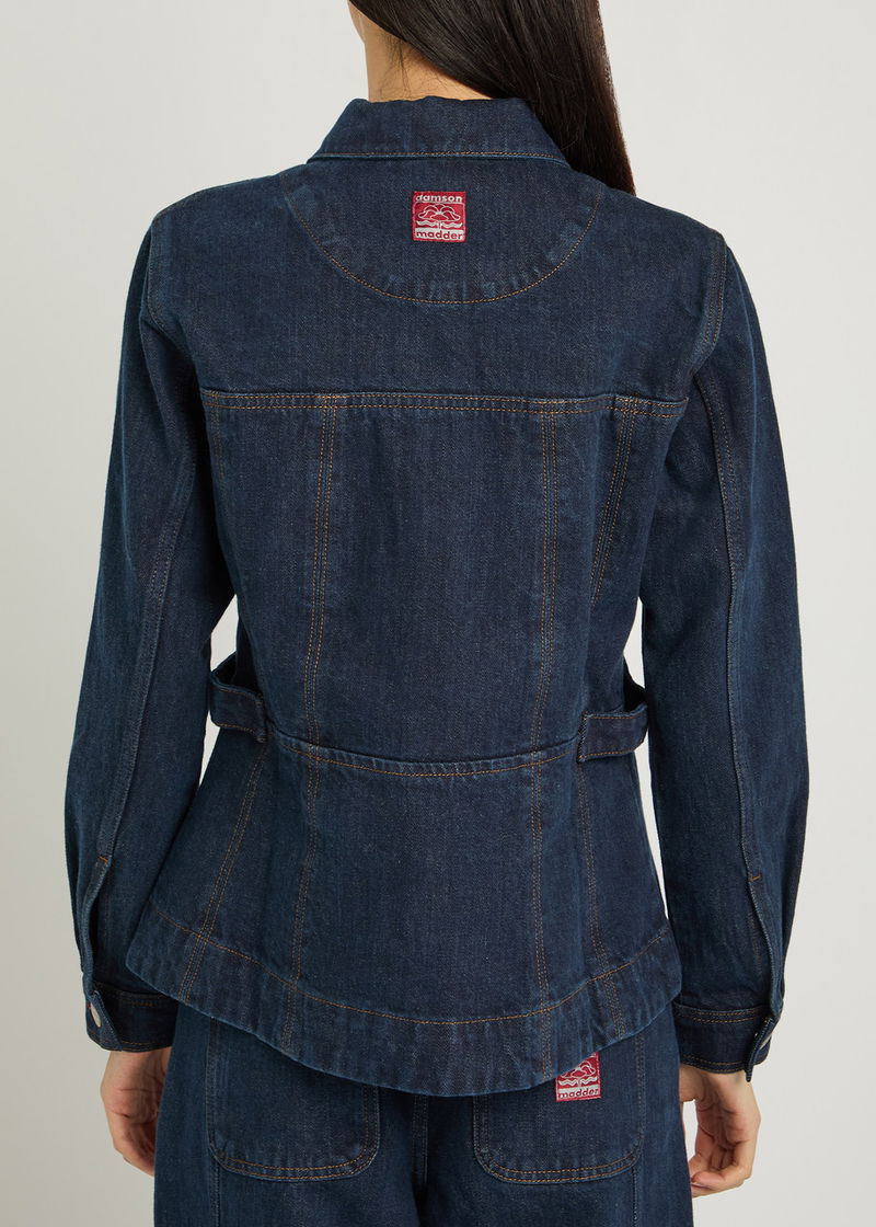 Damson Madder denim shirt. Panelled, button-fastening cuffs, adjustable button-fastening waist tabs, designer plaque at back, contrast stitching Button fastenings through front.