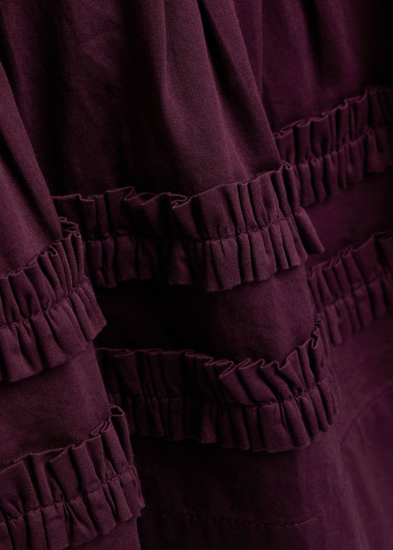 Damson Madder cotton-poplin blouse. Scoop-neck, pleated puff sleeves, elasticated cuffs, inverted pleats, ruffled trims. Concealed zip fastening at back.