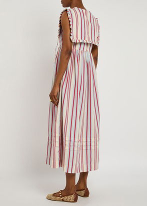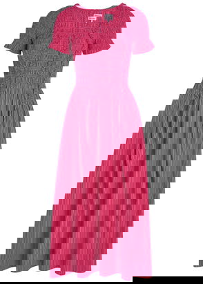 'Small and slow' London brand, Damson Madder's clothing is characterised by relaxed fits, feminine details and playful prints. Denim meets with ruffles, bows and embroidery, while cargo trousers might be rendered in an irreverent leopard print. Along with midi dresses, floral quilted jackets and oversized collar blouses, its gilets and long skirts are bestsellers.