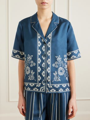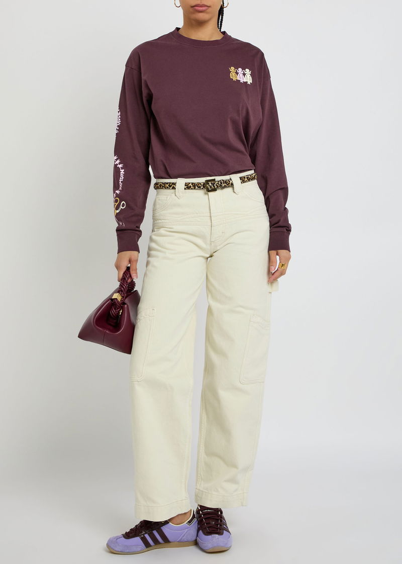 'Small and slow' London brand, Damson Madder's clothing is characterised by relaxed fits, feminine details and playful prints. Denim meets with ruffles, bows and embroidery, while cargo trousers might be rendered in an irreverent leopard print. Along with midi dresses, floral quilted jackets and oversized collar blouses, its gilets and long skirts are bestsellers.