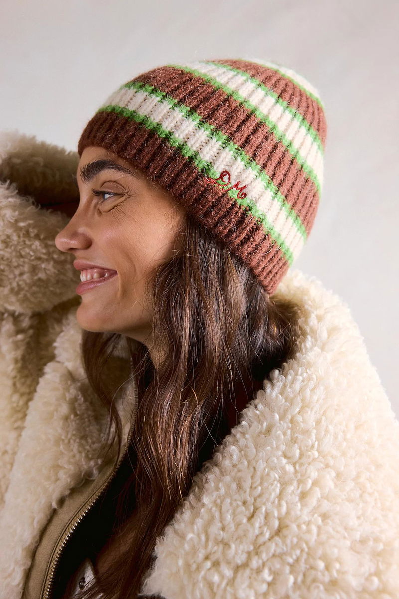 Forever cool and cozy, this timeless beanie is featured in a ribbed knit fabrication and staple, sleek silhouette with defined striping and embroidered logo for a special finishing touch.
