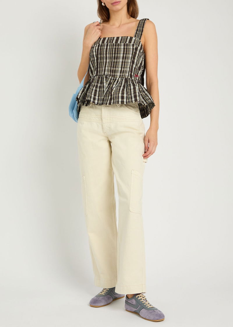 'Small and slow' London brand, Damson Madder's clothing is characterised by relaxed fits, feminine details and playful prints. Denim meets with ruffles, bows and embroidery, while cargo trousers might be rendered in an irreverent leopard print. Along with midi dresses, floral quilted jackets and oversized collar blouses, its gilets and long skirts are bestsellers.