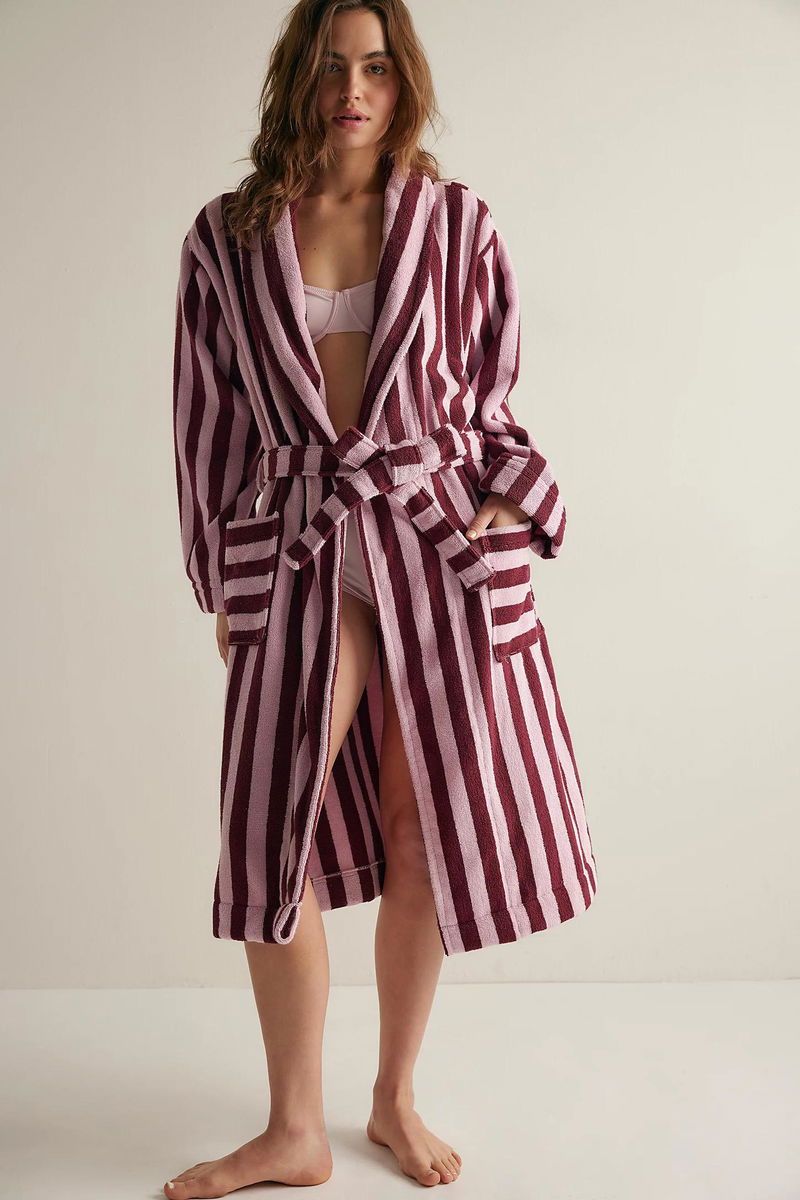 Indulge in endless comfort with this Damson Madder Towelling Robe, designed with a plush towel fabrication, two front pockets, and an adjustable belt at the waist for a bold, iconic relaxation staple, soon to be part of your lazy mornings and post-shower rituals.