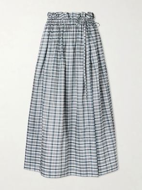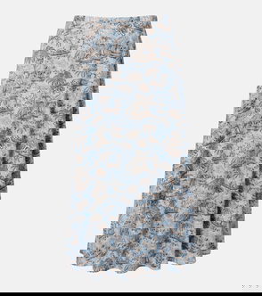 'Small and slow' London brand, Damson Madder's clothing is characterised by relaxed fits, feminine details and playful prints. Denim meets with ruffles, bows and embroidery, while cargo trousers might be rendered in an irreverent leopard print. Along with midi dresses, floral quilted jackets and oversized collar blouses, its gilets and long skirts are bestsellers.